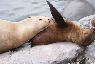 Seelöwen kuscheln. Fotograf: Uwe Brodrecht